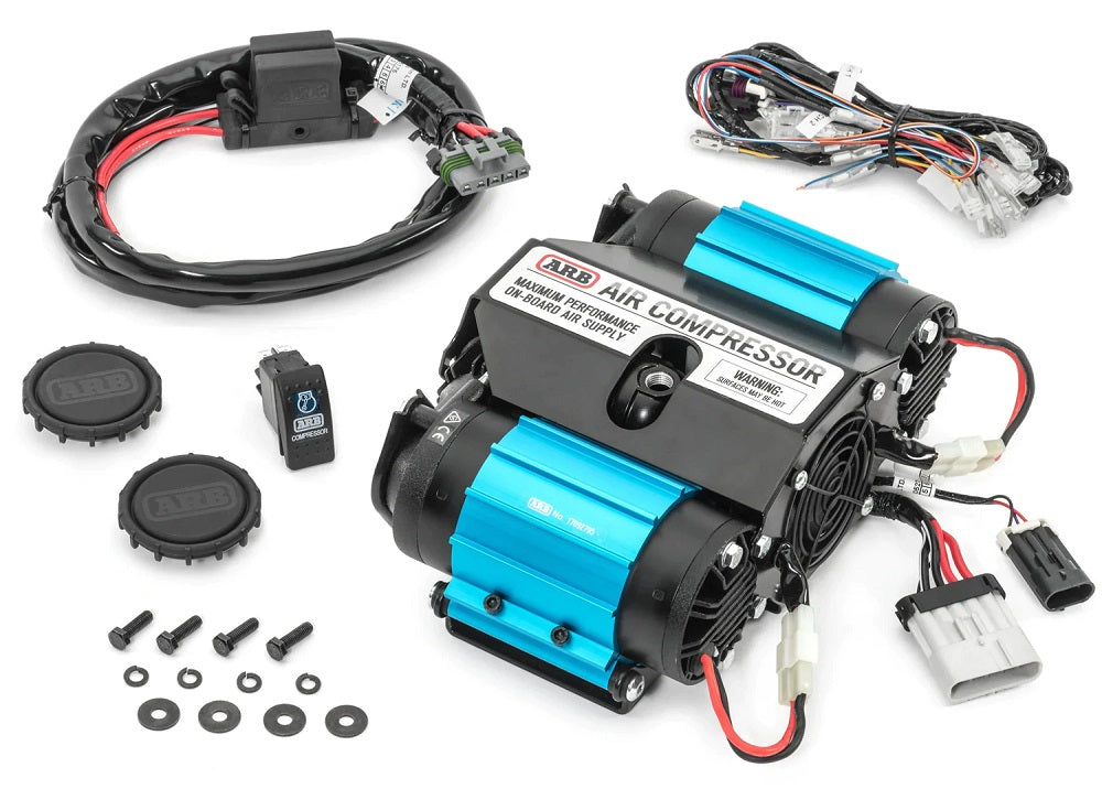 ARBs twin on-board compressor kit was designed to fill the market need for a compact sized yet high-volume compressed air source to suit the high volume airflow needs of most air powered tools, and also to suit the actuation and control needs of the ARB Air Locker , and the harsh and demanding environment of the ARB Air Locker user. ;